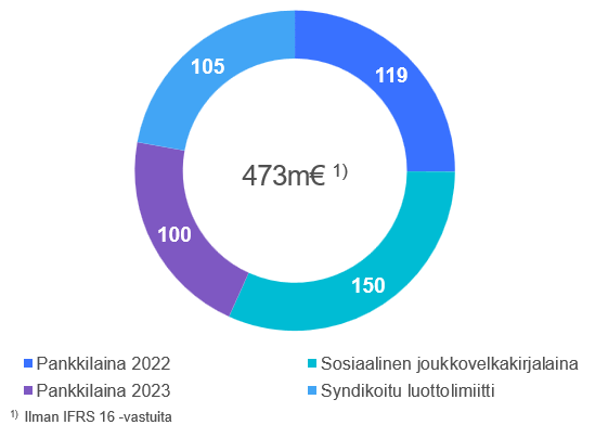 Sanoman rahoitus muodostuu syndikoiduista lainoista ja luottolimiitistä sekä yritystodistusohjelmista Suomessa ja Belgiassa. Sanomalla on 300 milj. euron komittoitu luottolimiittisopimus, jota se voi käyttää lyhytaikaiseen rahoitukseen tilanteissa, joissa rahoitusta ei olisi saatavilla yritystodistusohjelman kautta.